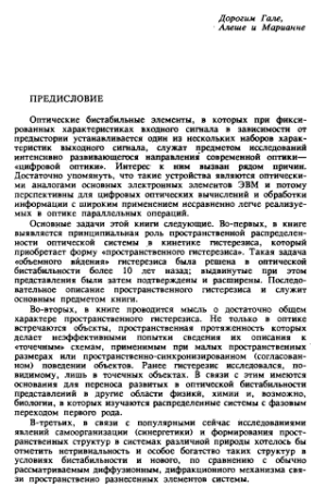 Рассмотрены гистерезисные явления в распределенных нелинейных системах, главным образом в оптических бистабильных системах. Выявлены эффекты поперечной и продольной распределенности систем, описана кинетика пространственного гистерезиса и формирования пространственно-временных структур излучения. Выводы теории сопоставлены с экспериментом. Обсуждены возможности использования бистабильности в проблеме оптической обработки информации. Для научных работников, аспирантов и студентов, интересующихся проблемами нелинейной оптики, лазерной физики, синергетики и обработки информации.