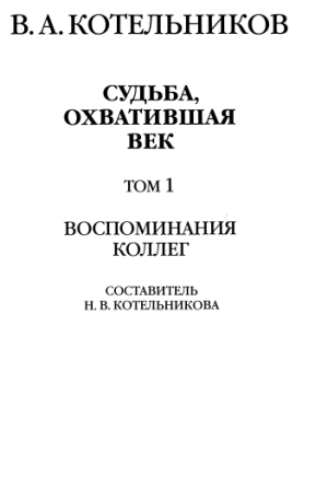 В.А. Котельников. Судьба, охватившая век. В 2 т. Том 1. Воспоминания коллег