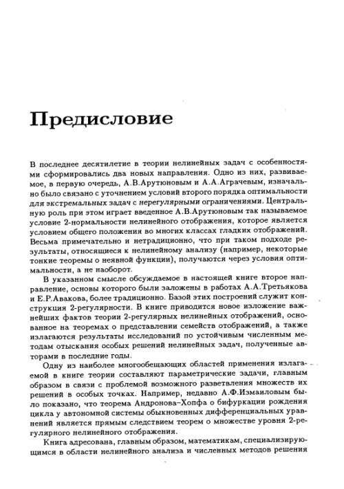 Излагается один весьма продуктивный подход к исследованию и численному отысканию особых решений нелинейных операторных уравнений и экстремальных задач, развивающийся в течение двух последних десятилетий. В основе подхода лежит конструкция 2-регулярности нелинейных отображений. В отличие от имеющихся монографий по данной тематике особое внимание здесь уделено вопросам устойчивости. Для научных работников, специализирующихся в области нелинейного анализа и численных методов решения нелинейных задач.