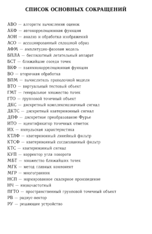 Изложены основы обработки изображений, представленных плоскими и пространственно расположенными точечными структурами в виде полей и локализованных групп. Описаны математические модели подобных структур, исследованы их свойства в условиях шума и априорной неопределенности неинформативных параметров. Рассмотрено решение задач, связанных с упорядочением и сегментацией точечных полей и групповых точечных объектов. Приведены алгоритмы распознавания зашумленных групповых точечных объектов и объектов, заданных точечными полями. Для научных работников и специалистов в области обработки изображений и распознавания образов, радиолокации и навигации, а также студентов старших курсов и аспирантов соответствующих специальностей.