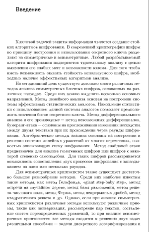 Кратко представлены основные составляющие современных криптографических систем: симметричные алгоритмы шифрования, асимметричные алгоритмы шифрования, функции хэширования. Основной упор сделан на рассмотрение практической возможности применения существующих способов анализа современных криптосистем с целью оценки их криптографической стойкости. В работе рассмотрен целый ряд параллельных алгоритмов, основанных на различных методах анализа. В качестве примеров приведены способы реализации разработанных алгоритмов с использованием двух наиболее распространенных технологий: с использованием интерфейса передачи данных MPI для организации распределенных многопроцессорных вычислений и технологии CUDA, основанной на использовании графических вычислений. Книга снабжена множеством наглядных примеров и иллюстраций. Впервые описаны подходы к разработке параллельных алгоритмов, ориентированных на программную реализацию, и предназначенных для решения задач в области информационной безопасности. Для специалистов в области информационной безопасности, реализующих известные методы анализа шифрованных данных с применением параллельных вычислительных систем.