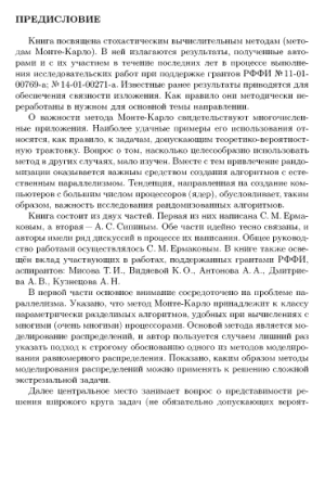 В книге излагаются в основном результаты авторов, развивающие методы Монте-Карло и полученные в последние годы при поддержке гpaнтов РФФИ. Необходимость связного изложения при этом потребовала также помещения в книгу ряда известных результатов, которые были подвергнуты авторами серьёзной методической переработке. Во всех случаях алгоритмы рассматривались с точки зрения их использования на современных компьютерах с большим числом процессоров (ПР-алгоритмы). Среди новых, вошедших в книгу результатов, можно особо отметить: обоснование и развитие стохастических методов решения параболических уравнений; применение метода Монте-Карло к решению сложных экстремальных задач и вычислению коэффициентов характеристического многочлена оператора; исследование стохастической устойчивости алгоритмов, связь с параллелизмом (знакопеременный случай) и ряд других. Книга будет полезна для широкого кpyгa исследователей, использующих многопроцессорную вычислительную технику для решения прикладных задач и развивающих теорию параллельных алгоритмов.