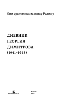 Георгий Димитров (1882–1949) остался в истории XX в. как несгибаемый борец против фашизма, деятель международного коммунистического и рабочего движения, национальный лидер послевоенной Болгарии. Менее известна российскому читателю деятельность Г. Димитрова, направленная на мобилизацию всех сил возглавляемого им Коминтерна на развертывание в Европе антифашистского движения Сопротивления, на отстаивание свободы и независимости Советского Союза в годы Великой Отечественной войны. В публикуемой впервые на русском языке обширной части личного Дневника Георгия Димитрова в период с 22 июня 1941 по 9 мая 1945 г. детально раскрывается участие коммунистической и антифашистской политэмиграции непосредственно в военных действиях Красной армии, в разведывательной, диверсионной, пропагандистской работе, работе среди военнопленных, а также в вооружённых действиях Сопротивления в оккупированной части Европы. Эта работа продолжалась и после прекращения деятельности Коминтерна в 1943 г., когда Димитров возглавил Отдел международной информации ЦК ВКП(б), к которому перешел ряд секретных функций Коминтерна. В Дневнике подробно описываются беседы и переписка автора с И.В. Сталиным, В.М. Молотовым, К.Е. Ворошиловым, А.С. Щербаковым, руководителями разведывательных служб П.М. Фитиным, И.И. Ильичевым, П.А. Судоплатовым, лидерами компартий П. Тольятти, В. Пиком, М. Торезом, Мао Цзэдуном, И. Броз Тито и многими другими политическими, государственными и военными деятелями.